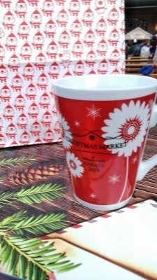 イベント会場で販売されているホットワインを注文すると貰える、すっかりお馴染みとなったこちらのノベルティ。今年は赤基調で、まさしくクリスマスカラーですね。