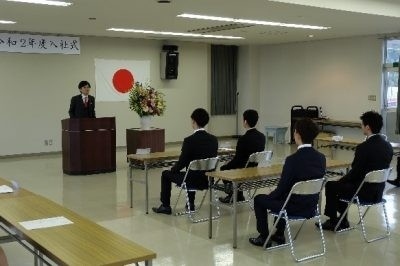 少し緊張した面持ちで式に臨む、初々しい様子の新入社員たちに対し、社長、会長、先輩社員から歓迎の言葉が贈られました。