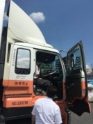 その後、営業所スタッフの案内のもと、営業所や倉庫内を見学し、トラックやフォークリフトの運転席乗車体験などをしました。