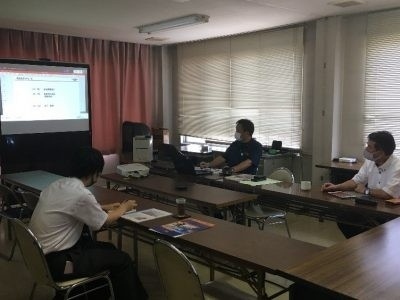 まず、本社とWEB会議をつなぎ、人材開発室からパソコン越しに会社の概要について説明が行われました。