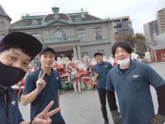 お届けの時よりもインパクトが強いのか、作業していると、パシャッパシャッと『サンタ泥棒だ!』とでも言わんばかりに、通りすがる人にシャッターを切られるのです。