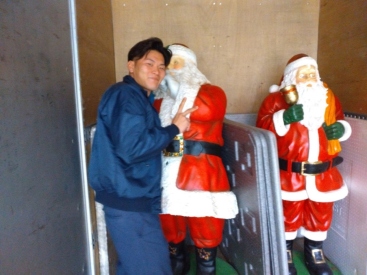 トラックの荷台にサンタさんだらけだと、ちょっと不気味な印象に(笑)