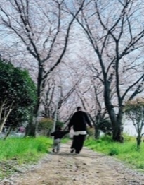 昨年、家族で桜並木を歩いたときの写真があったので、季節のご挨拶も兼ねて添えさせていただきます。